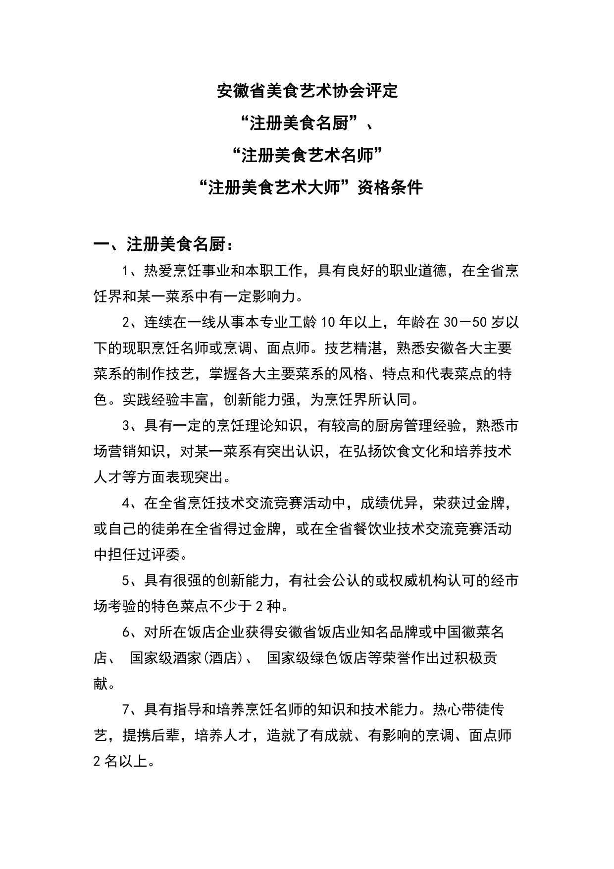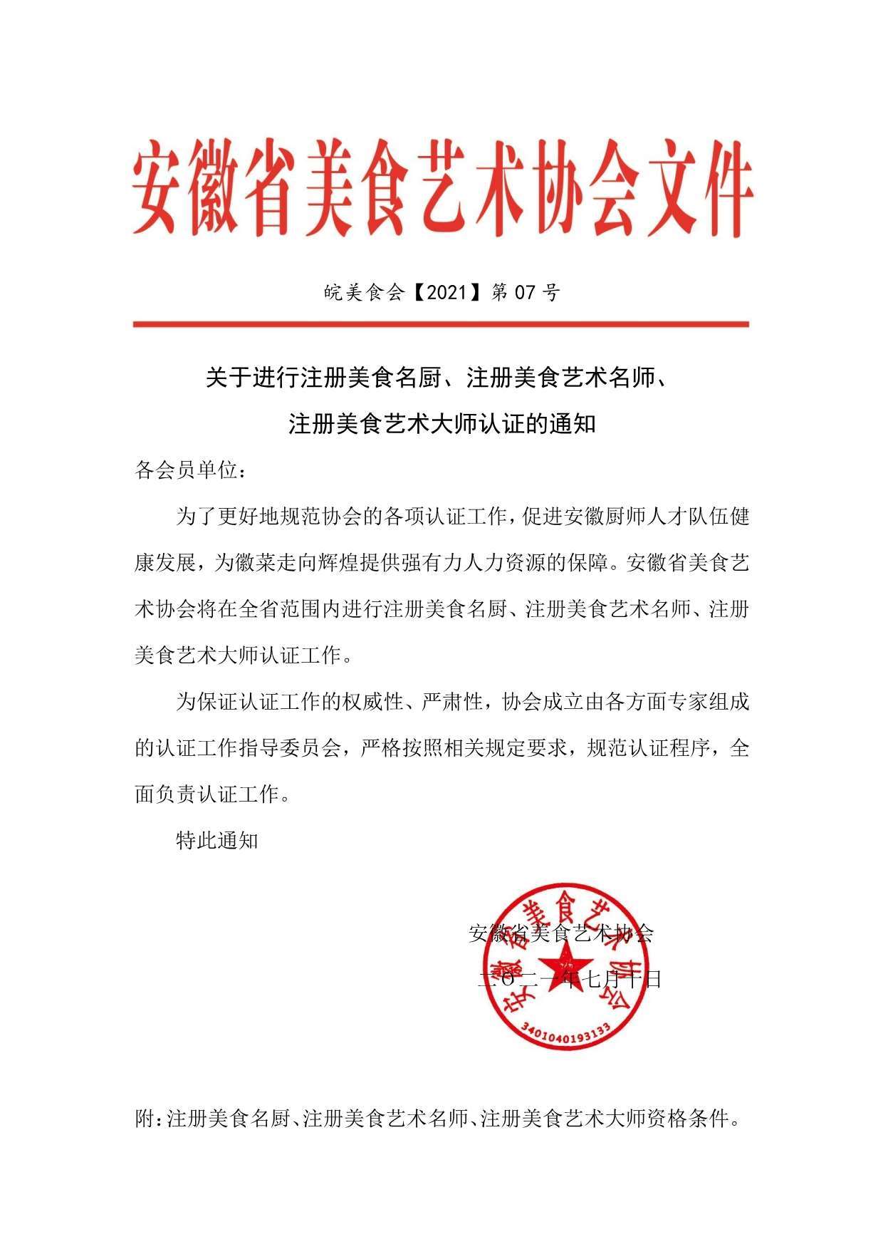 关于进行注册美食名厨、注册美食艺术名师、 注册美食艺术大师认证的通知